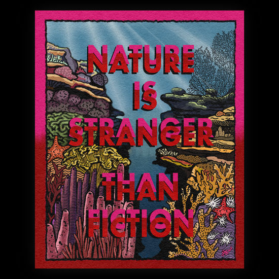 An artwork for the readers and nature lovers alike! This is the first print in a series that will highlight the strangest corners of nature, the parts of it that seem too strange to be real, and definitely too weird to have been thought up by humans.